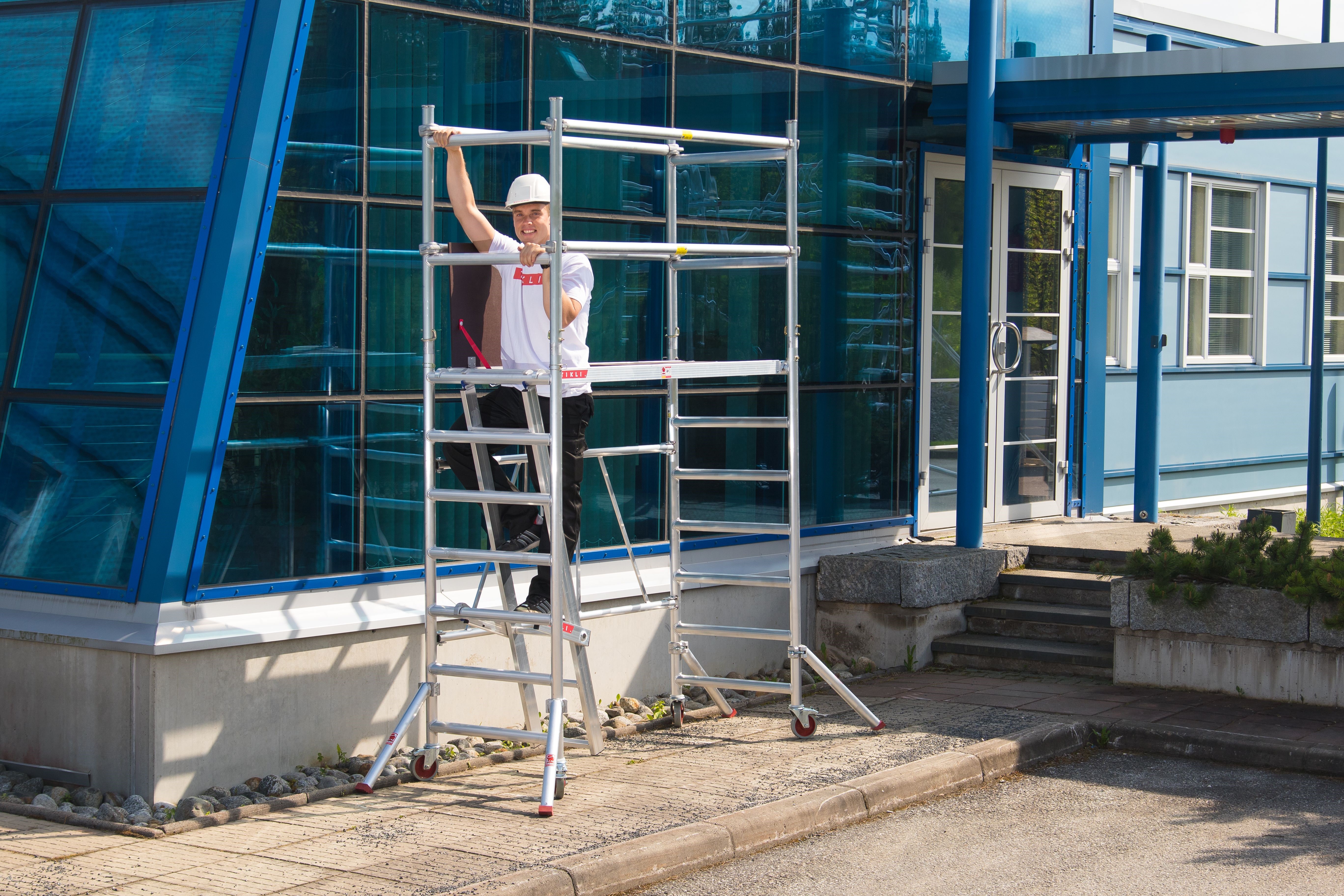 Tikli Jumbo 178 builder's set is ready to use scaffold set that is quick to use and easy to move. It's easy to adapt with lifting parts or with a second scaffold. It is possible to raise up to a height of up to 8 m up to the level without a separate wall support.