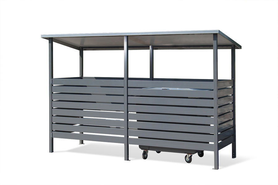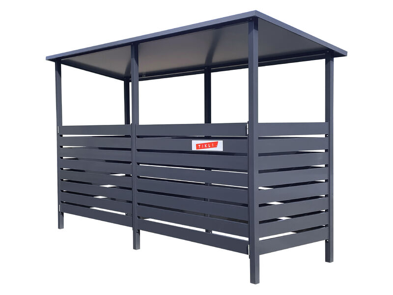 Tikli-roskakatos L on ovellinen roskakatos kahdelle 660-litraiselle jäteastialle. Roskakatos L soveltuu erityisesti taloyhtiöiden, yritysten tai julkisten tilojen pihoihin. Tyylikkäät katokset lisäävät piha-alueen viihtyisyyttä ja ovat turvallisia niin roskapussin viejälle kuin astian tyhjentäjällekin. Elementtirakenteen ansiosta katoksen voi pystyttää paikan päällä. Alumiininen raskakatos on kestävä, helppohoitoinen ja ekologinen ratkaisu jätehuoltotarpeisiin. Väreinä valkoinen ja tumman harmaa, ja ottamalla yhteyttä myyntiimme voit tilata katoksen myös muissa väreissä!